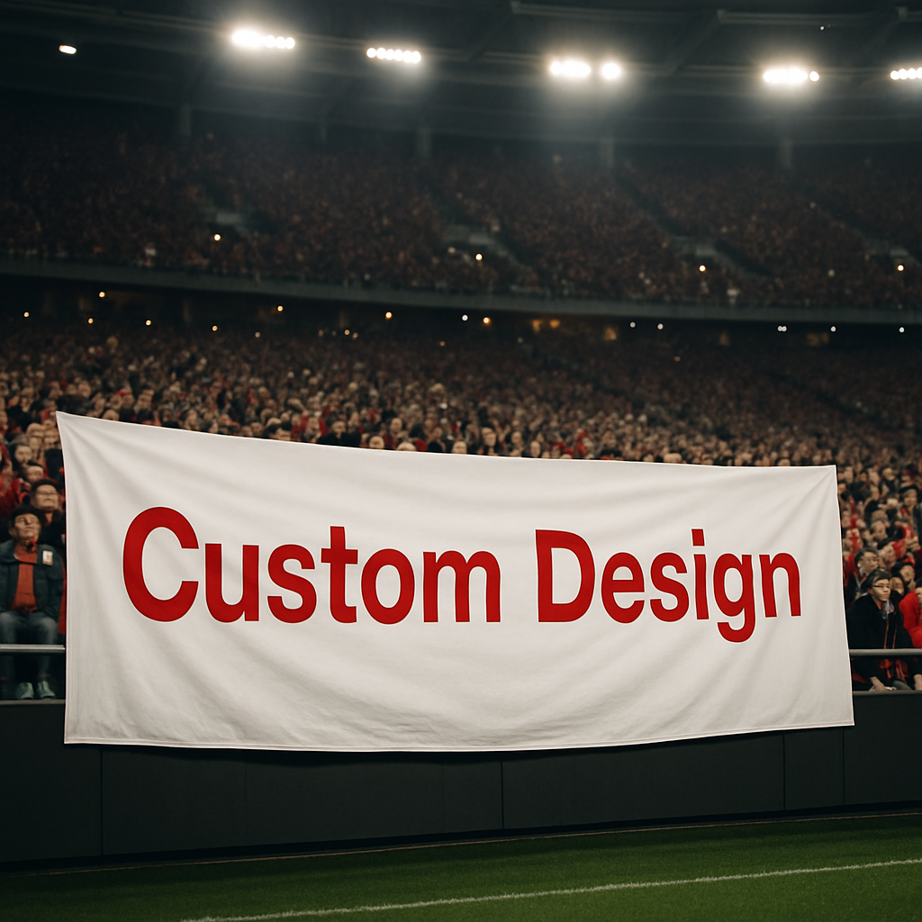 Available in any size, shape or design, with sharp full-color printing and reinforced edges. Ideal for stadiums, arenas, choreos, protest banners, or one-off visual statements.